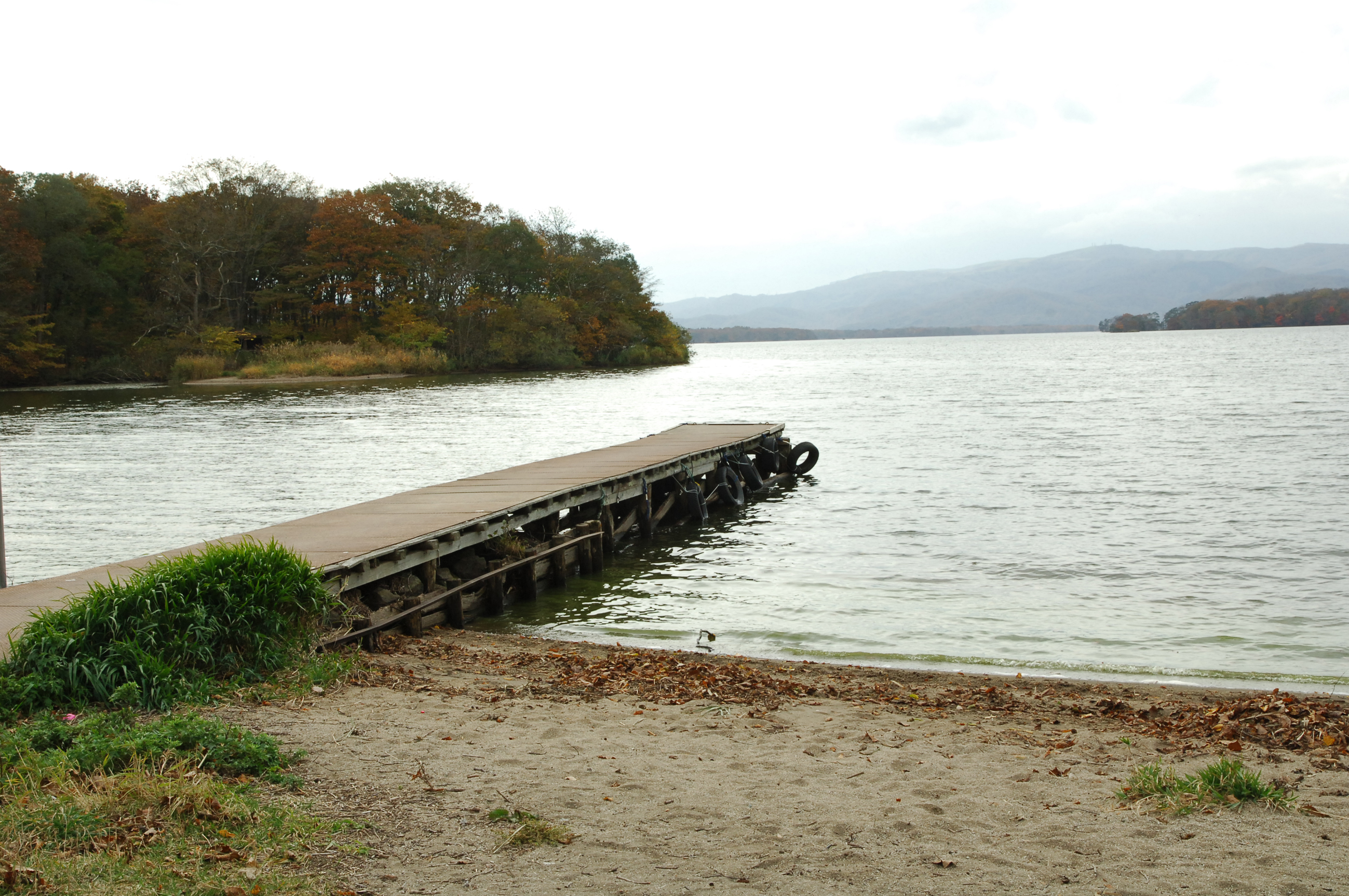 東大沼キャンプ場から望む湖