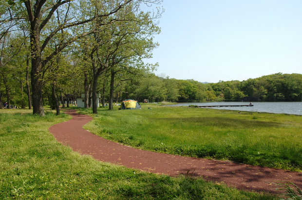 大沼の湖畔に沿って整備された無料で利用できるキャンプ場。所々に小さな炉が設置され、焚き火やバーベキューを楽しめる。キャンプに限らず、サイクリング、釣り、カヌーといった様々なアウトドアを心行くまで満喫できる。春には新緑、秋には紅葉を楽しむ利用者も多く、カヌーハウス付近から樹木に囲まれた大沼を望む景観が季節によって表情を変える。