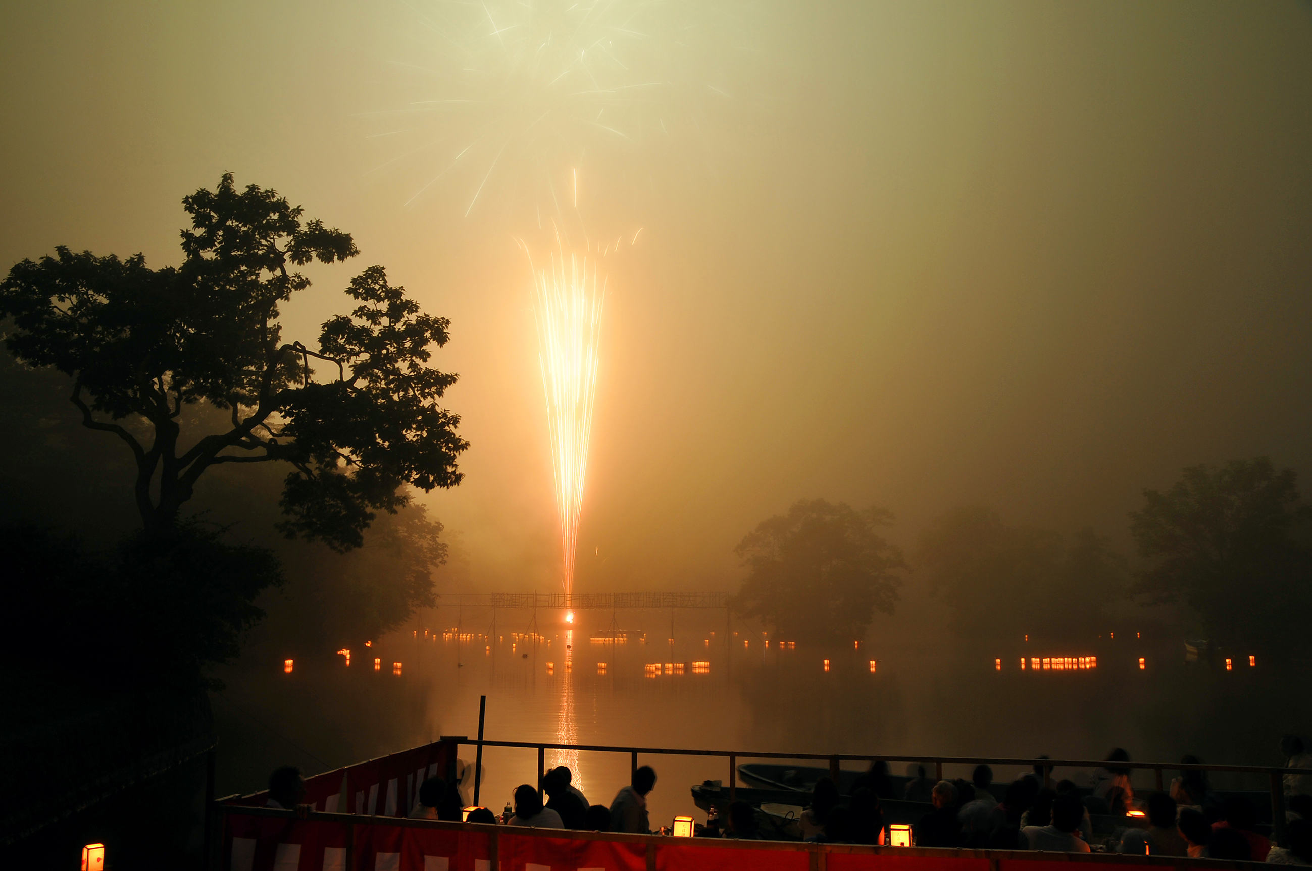 大沼国定公園に打ち上がる花火